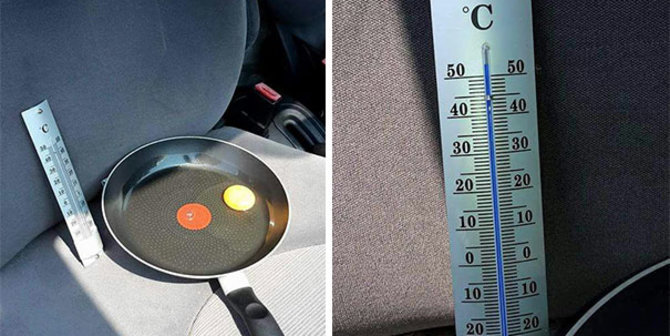Dia menunjukkan apa yang terjadi pada sebutir telur di atas penggorengan jika ditinggalkan di dalam mobil yang diparkir pada cuaca panas.